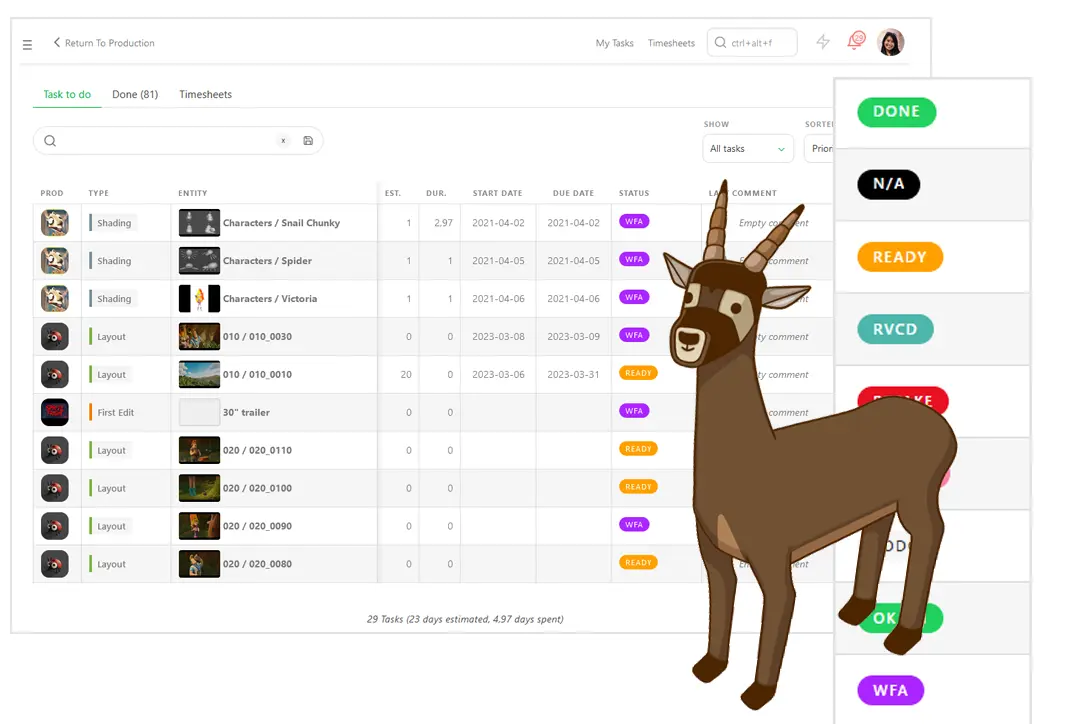Les logiciels légers et clairs sont faciles à prendre en main. Avec Kitsu, vous pouvez démarrer vos projets sans avoir recours à un consultant ou une formation particulière.