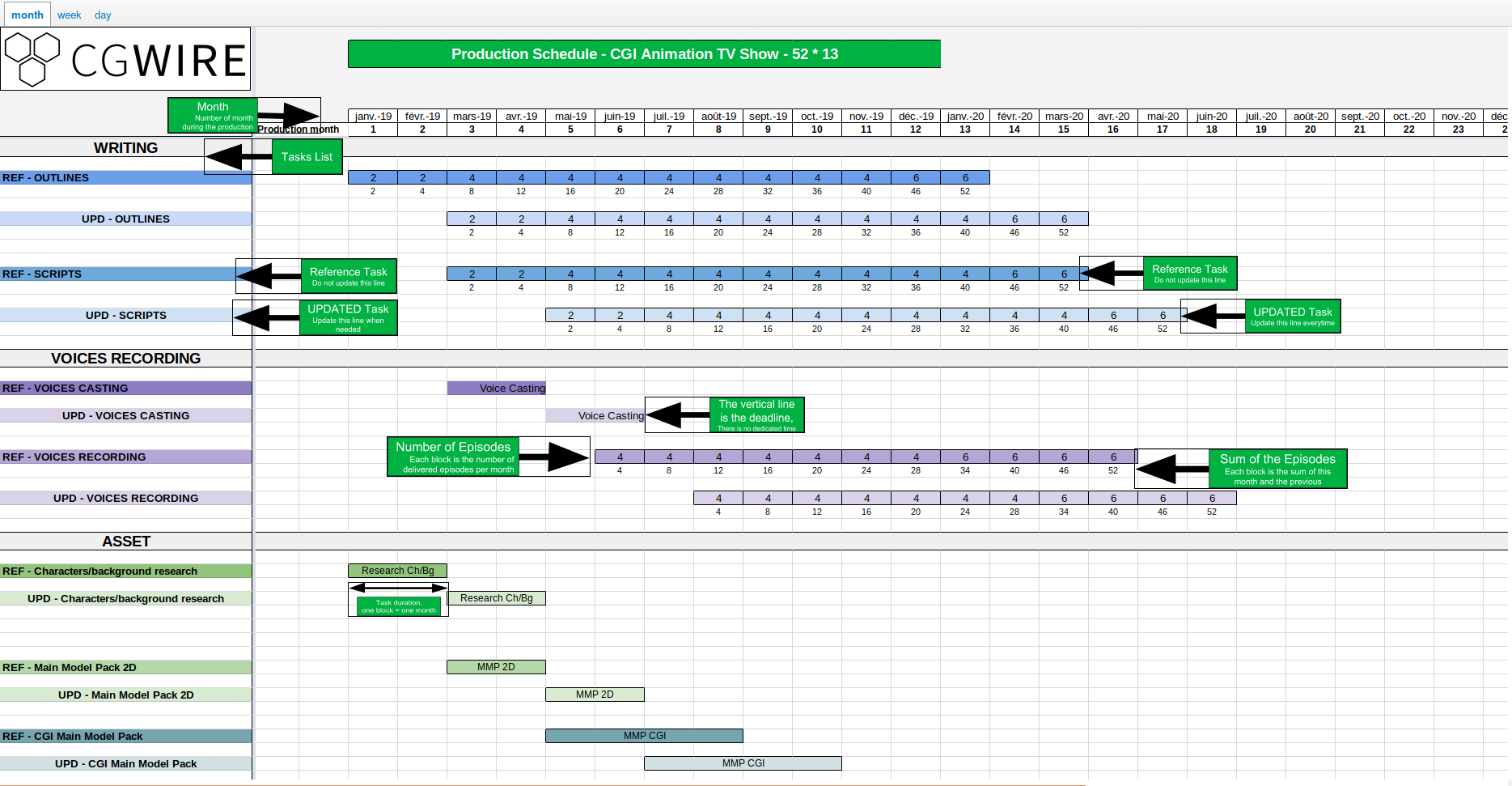 Nous savons que vous êtes habitués aux spreadsheets et que démarrer sur un nouvel outil n'est pas facile. Même si vous n'êtes pas prêts à utiliser Kitsu, nous voulons vous aider. Nous avons donc préparé pour vous des feuilles de production éprouvées sur le terrain. Vous pouvez vous en servir comme point de départ pour votre workflow ou les garder tout au long de votre production. Tout est gratuit et sous licence Creative Commons by-nc-sa 2.0. On vous laisse apprécier !